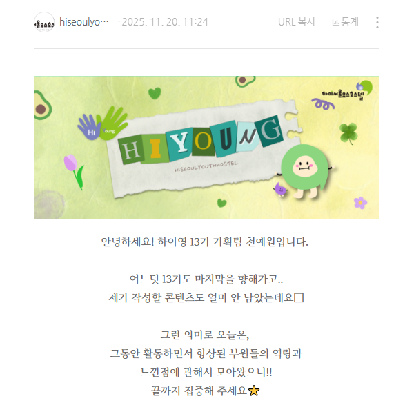 하이영 13기 하이서울유스호스텔 Q&A 3탄
